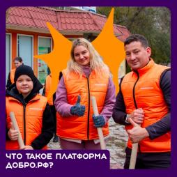 «Добро.РФ»-крупнейшая в России площадка, где волонтёры могут найти возможность для помощи, а организаторы - желающих помочь.Сама платформа появилась в 2016 году по инициативе Ассоциации волонтёрских центров и сейчас объединяет более 7 млн пользователей.
